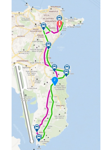 Whether arriving by plane, ferry, or cruise ship, we have provided clear coloured bus routes and bus stop locations on the map to take the stress out of public transport. Current schedules can be found at local stops or online using the links provided. If you have more time, you can use the Green bus service to visit popular destinations like Paleokastrita, Kassiopi, Benitses, and more. Please switch to our Corfu Travel Guide app, where routes and up-to-date timetables for public transport in Corfu are provided, ensuring easy access to all your travel needs in Corfu Town and beyond.