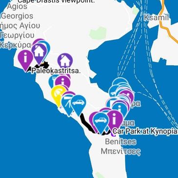 NOTE: This tour can be accessed from anywhere in Corfu, by following the orange routes.