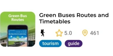 The orange icons in all the Green Bus categories display the bus's departure time from that bus stop and times along that route. Under that, you will see the time it returns to the bus station.